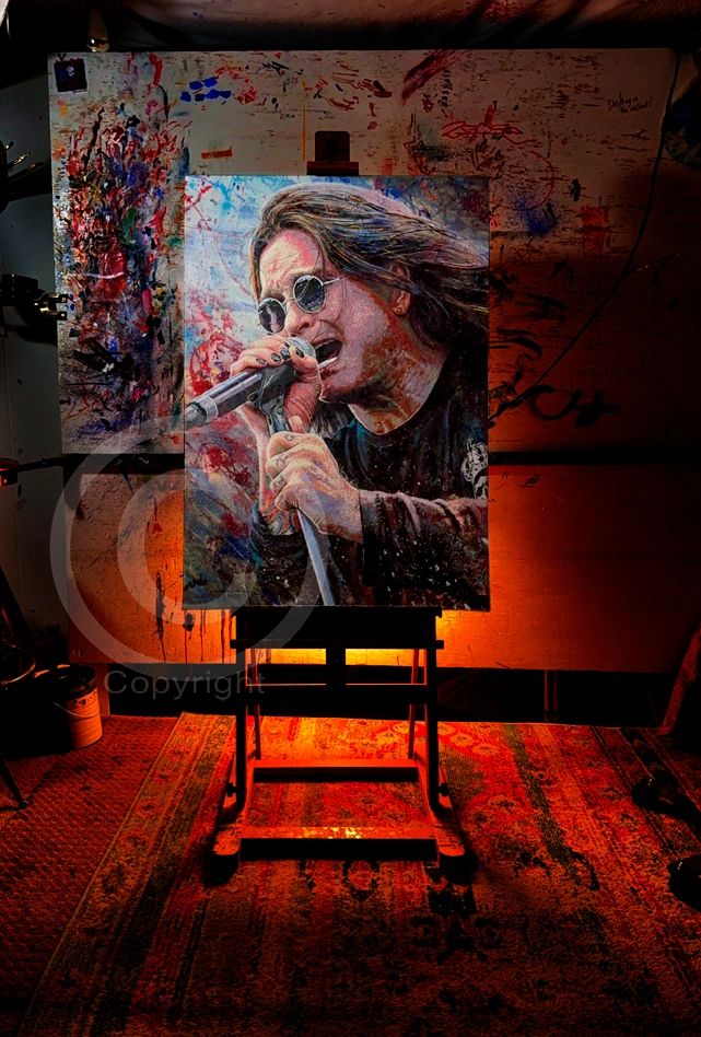 This painting is based off of an epic photo taken of OZZY performing during Ozzfest on August 9th, 2008 at the Pizza Hut Park in Frisco, Texas.